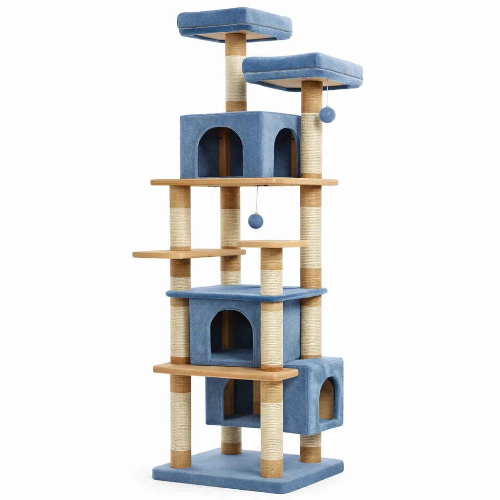Dispose de 6 niveaux, 3 compartiments et 9 poteaux. Comprend des zones d'escalade, de repos et des accessoires de jeu.