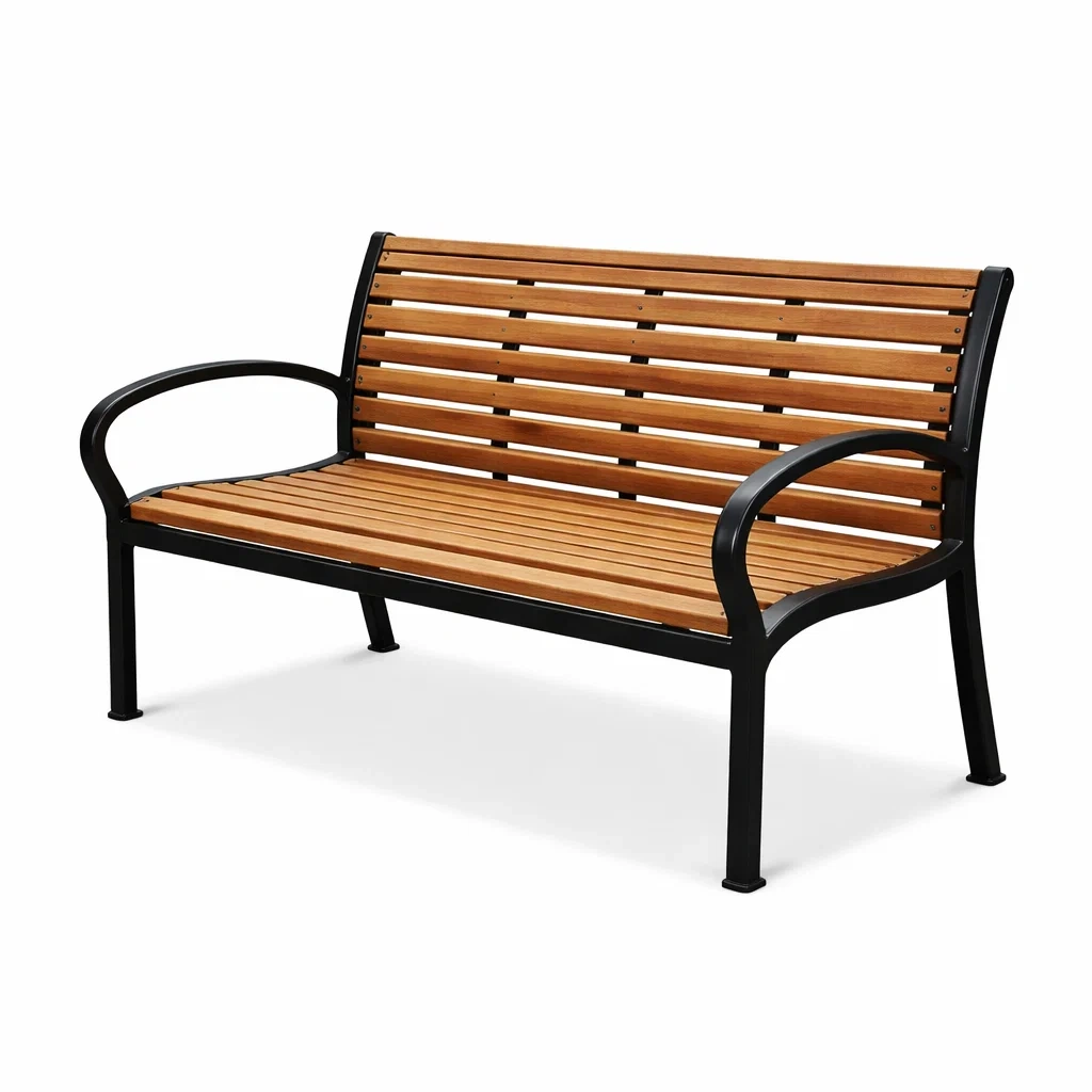 Ce banc de jardin est fabriqué avec une assise et un dossier en bois d'acacia massif, soutenu par une structure en métal noir résistant. Conçu pour une utilisation en extérieur.